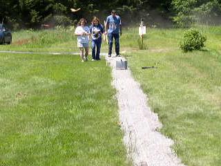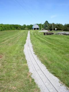 This was the 11th visit to the DS&N by Moose Valley crews, and a beautiful weekend to start our 2004 season with. 50' of new track were laid on the West Pike subdivision, extending to MP 70.0. 60' is needed to complete the subdivision. Extensive ballast work was performed, and a successful run session was held Sunday evening using all available equipment.