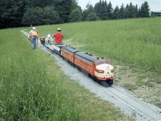 Railroad employee Graham Agne celebrated his 8th birthday during this weekend of work. The hard working crew took a break from track laying on Saturday for a water balloon battle in his honor. A cruise on the Millersburg Ferry was the order of the day, as the crew deadheaded back to Millersburg to catch the next southbound Moose Valley freight to Berkeley Springs.