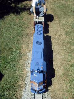 This was the last full weekend in which to prepare for the upcoming WAG Convention in Galeton on August 14th. On Sunday July 24th, locomotive 2200 was repaired (a voltage regulator was replaced to correct an electrical problem), and paired up with 2300 to pull the train which will be used for the WAG convention. 11 test trips were made without incident, and it is our hope that the track and railroad will perform as well as it did this weekend. Tune in next Month to find out!